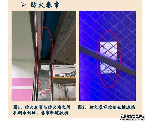 管理要求 防火分区处设置的防火卷帘应当保证防火封堵完整性,且防火卷帘的相应配件应当保持完好有效,确保火灾情况下,防火卷帘正常关闭,起到防火防烟的分隔作用。